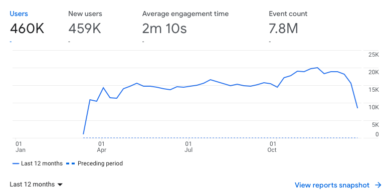 We collect some unpersonalized stats from our docs using Google Analytics. In 2022, sometimes we had more than 20,000 unique visitors a week. This is 10 times more than in 2021!
