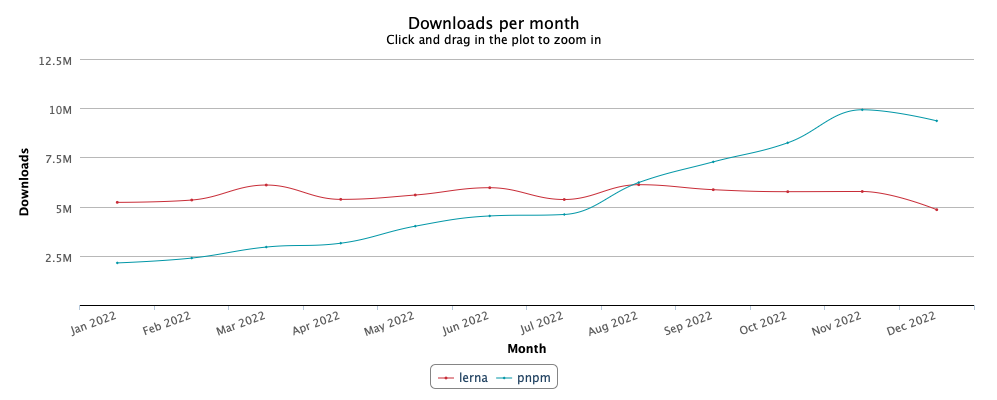 My goal this year was to beat Lerna by the number of downloads. We were able to achieve this goal in August: